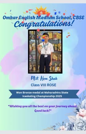 Omkar English Medium School, CBSE, proudly congratulates Hem Shah of Class 8 (Ro…