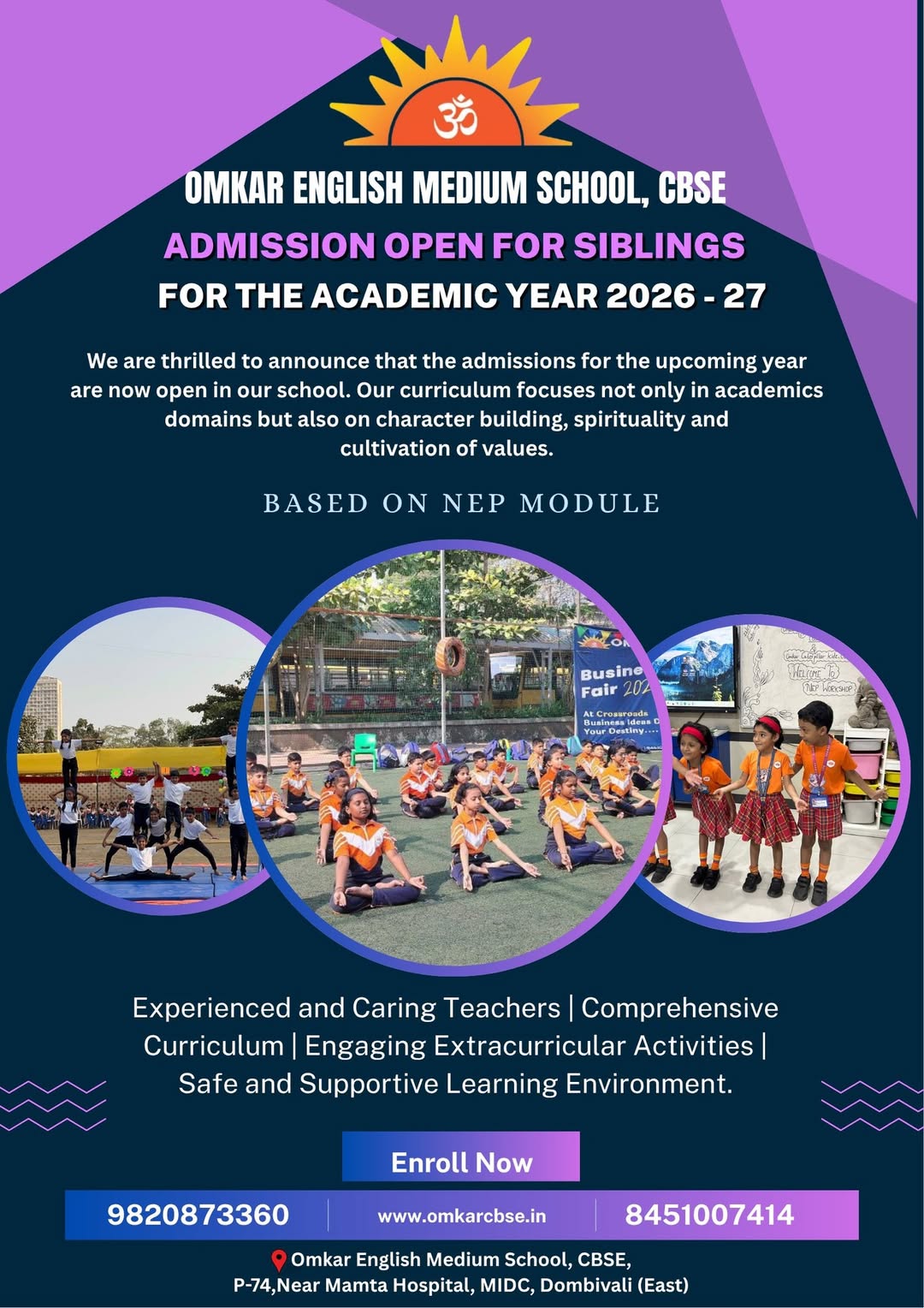 We are thrilled to announce that admissions for the 2026–27 academic year are now officially open at Omkar English Medium School, CBSE. …